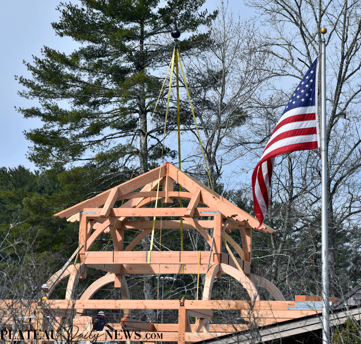 Village.Green.timber.Commons (18) 8 Apr 2019 Timber frame for new Commons building at The Village Green is complete 730 × 697