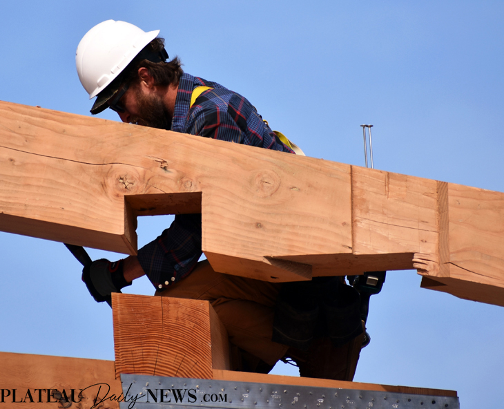 Village.Green.timber.Commons (29) 8 Apr 2019 Timber frame for new Commons building at The Village Green is complete 730 × 592