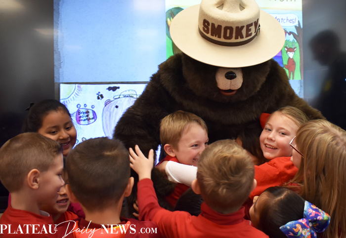 Smokey Bear visits first graders at Highlands School